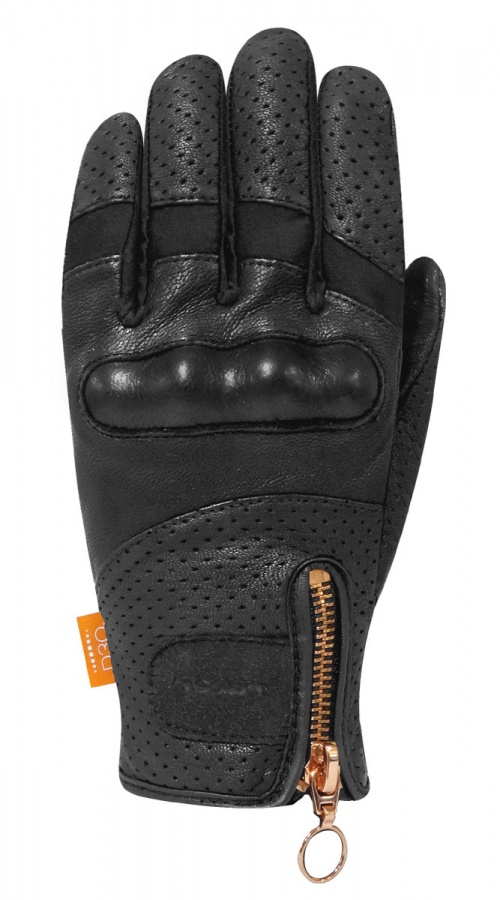Réalisé dans en cuir perforé pour assurer une bonne ventilation par temps chaud, le gant adopte un design rétro parfaitement dans l'air du temps, avec ses petits détails comme le zip doré-rose au niveau du poignet.