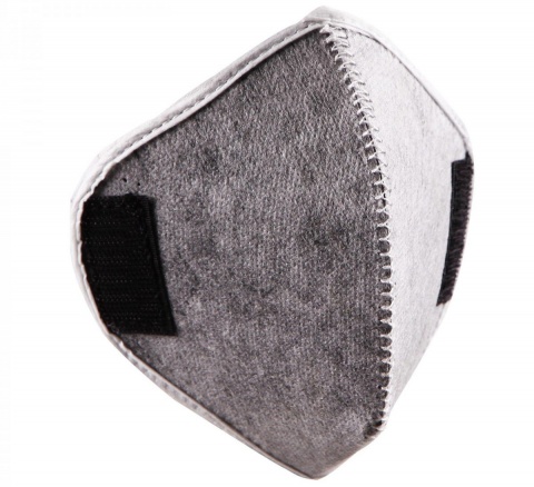 Il intègre un filtre avec charbon actif, qui s'accroche au masque via deux velcros situés sur les côtés.