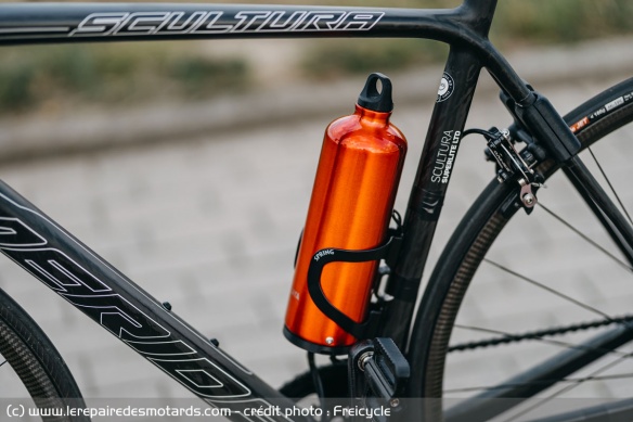 La batterie n'a pas été oubliée, bien qu'on ne semble ne pas la voir. En effet, Freiburg a conçu sa batterie en la camouflant sous la forme d'une gourde, là encore grâce à l'impression 3D. Le résultat est visuellement impeccable et permet tout de même d'assurer une autonomie oscillant entre 19 et 35 km.