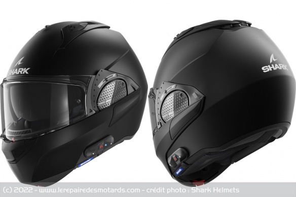 L'EVO-GT était également compatible avec le système de communication Sharktooth. Mais avec le rachat de Nolan survenu en 2019, le fabricant français commence à intégrer les systèmes de communication N-COM et décline désormais son modulable haut de gamme dans une nouvelle variante équipée en série de l'intercom B802SK.