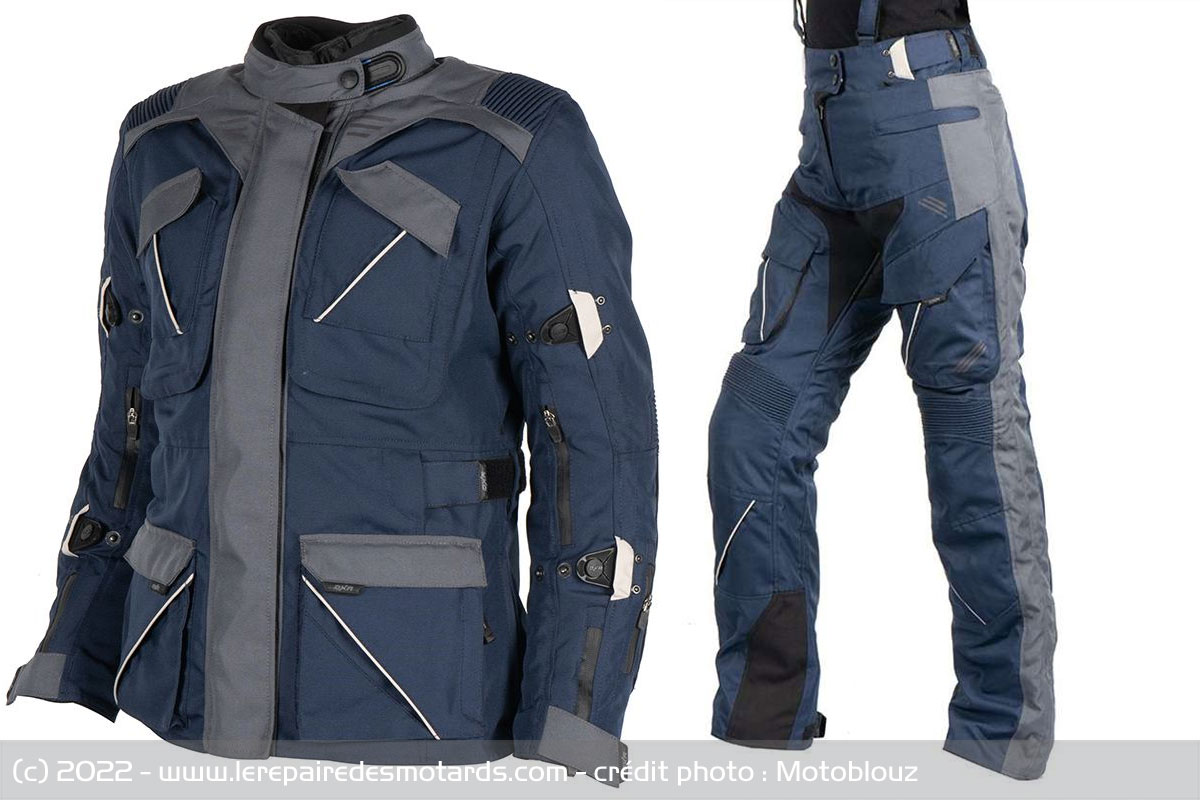 Décliné en bleu et en noir, l'ensemble DXR Capetown Lady parvient également à contenir son prix avec une veste tarifée à 249,90 euros et un pantalon vendu 159,90 euros, soit 409,80 euros pour l'ensemble complet.
