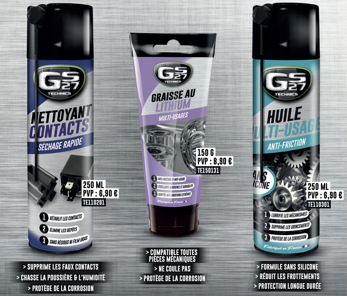 GS27, fabricant français de produits d'entretien, étend sa gamme Technics avec trois nouveaux produits destinés à nettoyer et protéger les contacteurs électriques, mais aussi lubrifier et éliminer les frottements parasites qui accélèrent l'usure des pièces.