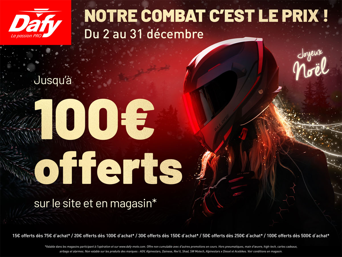 Jusqu'au 31 décembre prochain, l'enseigne spécialiste de l'équipement du pilote et des accessoires motos met en place des remises immédiates sur les paniers de ses clients en fonction du montant total des achats.
