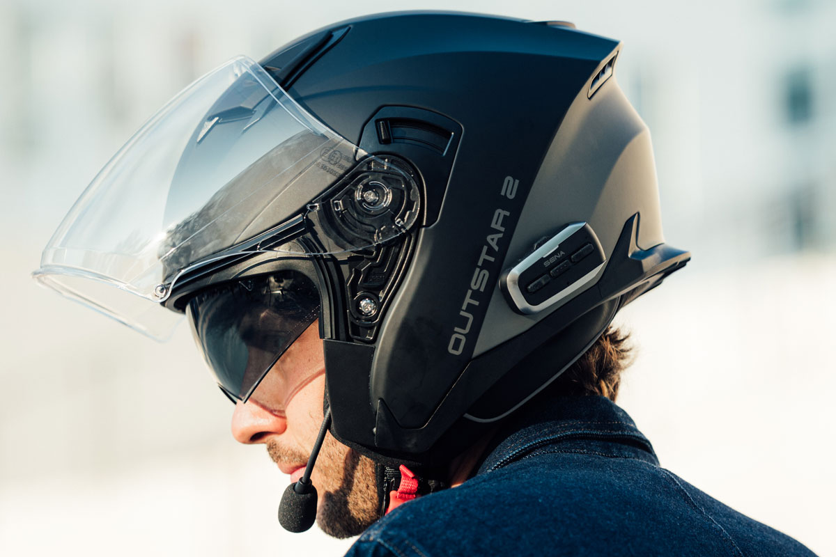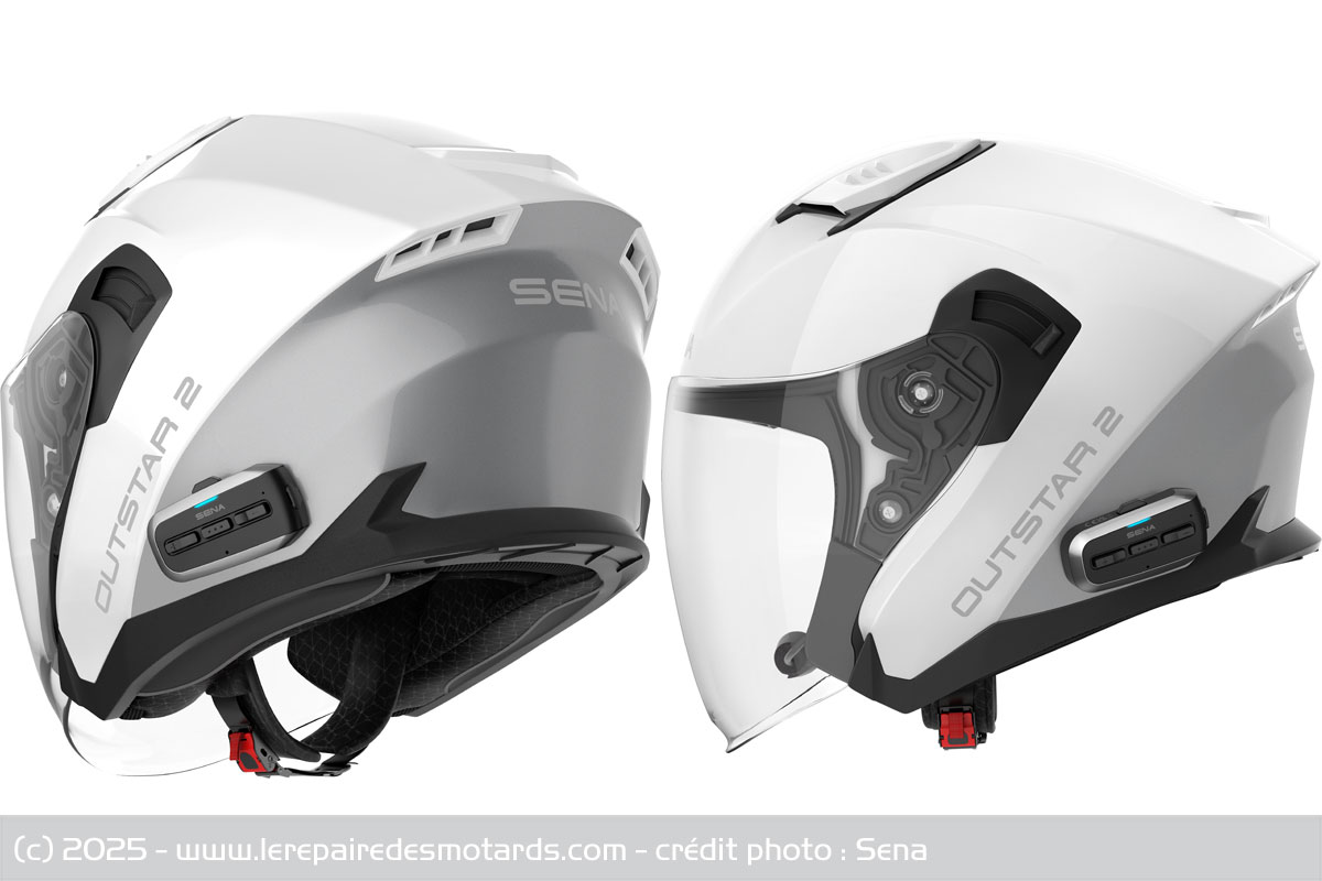 Décliné dans deux coloris noir mat et blanc brillant, le casque jet Sena Outstar 2 sera disponible courant décembre au prix de 269 euros.