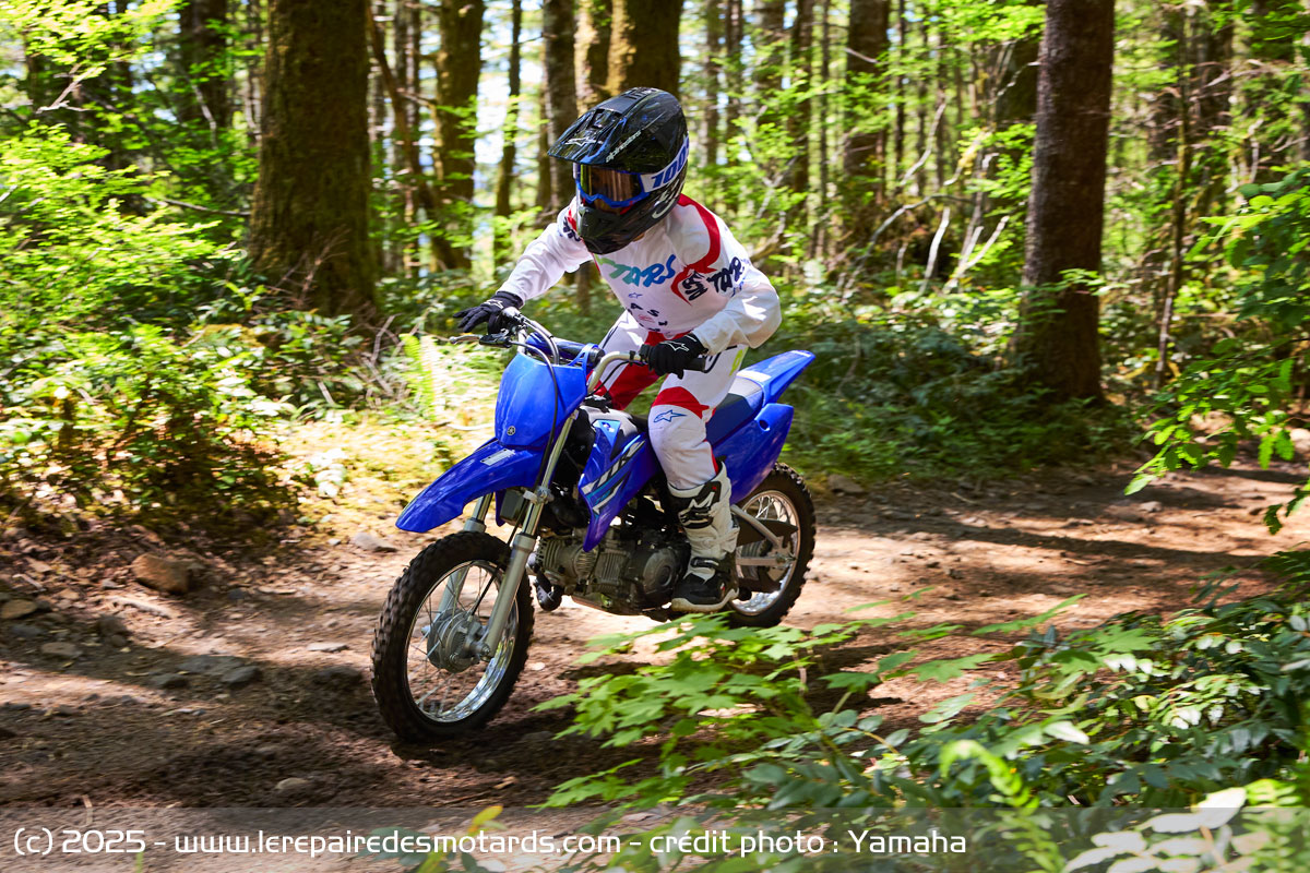 Le constructeur japonais pense aussi aux plus jeunes avec ses TT-R50 et TT-R110 adaptés aux enfants. Ici pas de changements techniques par rapport aux millésimes précédents, mais uniquement un habillage bleu arborant des graphismes modernisés.