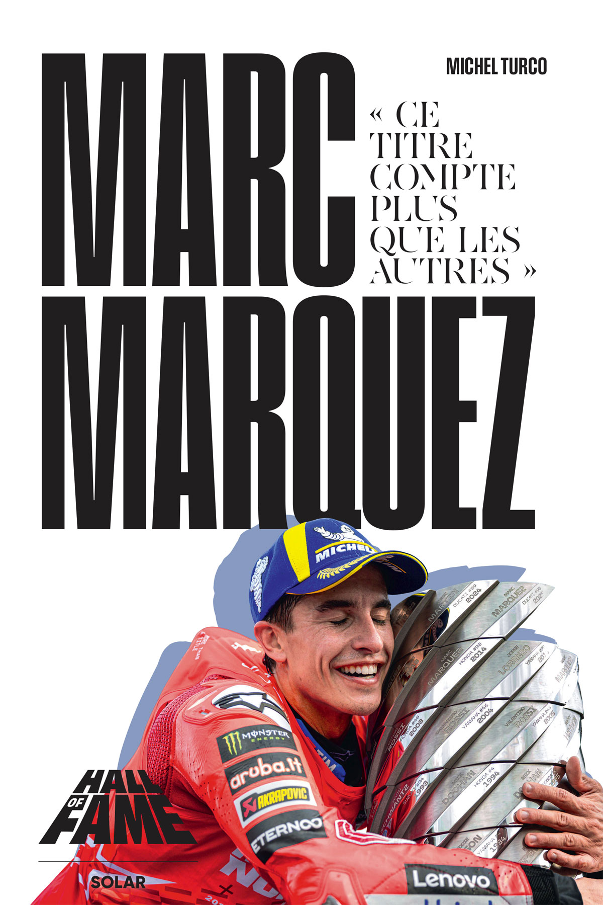 Ce parcours, Michel Turco, grand spécialiste des Grands Prix moto, a décidé de le raconter dans un livre tout juste arrivé en librairie : Hall of Fame Marc Marquez. Il y retrace non seulement l'exploit de cette saison, terni par une nouvelle blessure à l'épaule, mais aussi la résilience dont a su faire preuve ce champion hors norme.