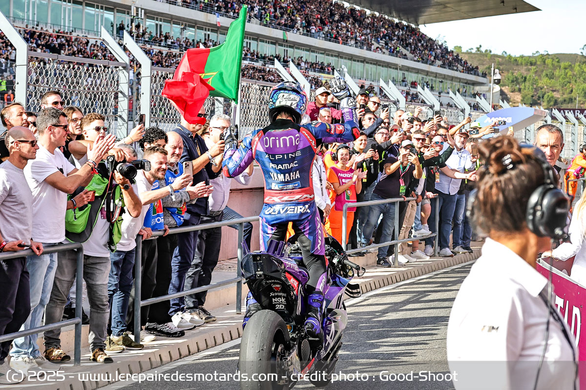 Miguel Oliveira salue son public pour sa dernière participation avant son départ du MotoGP à la fin de la saison