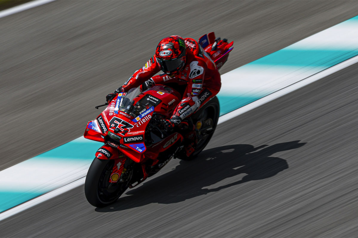 Qualifié en pole position du Grand Prix de Malaisie après être parvenu à sortir de la Q1 quelques minutes plus tôt, Francesco Bagnaia semble particulièrement à l'aise ce week-end sur le circuit de Sepang.