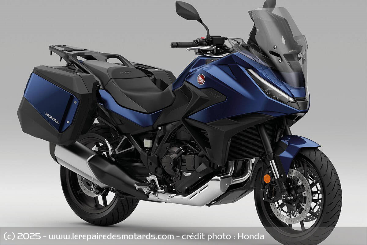 Alors forcément, les choses bougent assez peu pour le millésime 2026. Mais pour ne pas freiner sa GT sur sa route, Honda a tout de même décidé d'ajouter un nouveau coloris gris pour les trois versions de NT en complément des deux livrées bleu et beige déjà existantes.