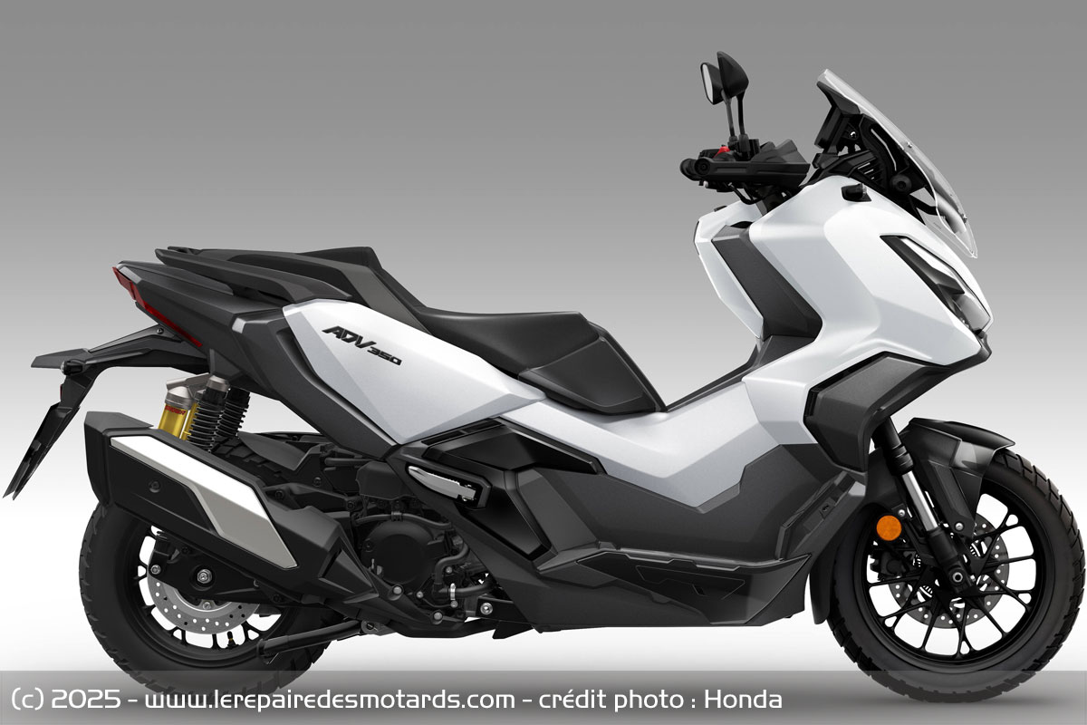 Pour le millésime 2026, Honda ne bouleverse pas ses habitudes et maintien logiquement ce scooter au catalogue en renouvelant toutefois les livrées. Toujours disponible dans son habillage noir mat, l'ADV350 abandonne ses robes rouges et argent pour deux nouvelles finitions blanc mat et gris, soit un total de trois variations.