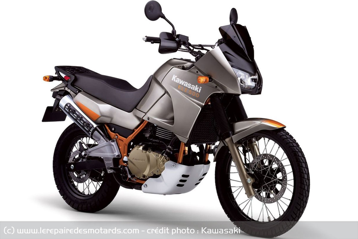 Trail économique et plutôt polyvalent, la KLE 500 fut lancée en 1991 par le constructeur d'Akashi autour de la base mécanique des GPZ et ER-5. Après 15 ans de bons et loyaux services, la KLE fut finalement retirée de la gamme avec l'introduction de la norme Euro 2, mais aussi avec l'arrivée d'une Versys 650 plus routière et plus dans l'ère du temps.