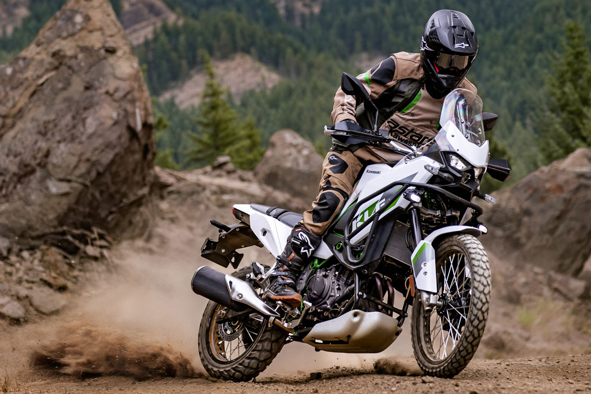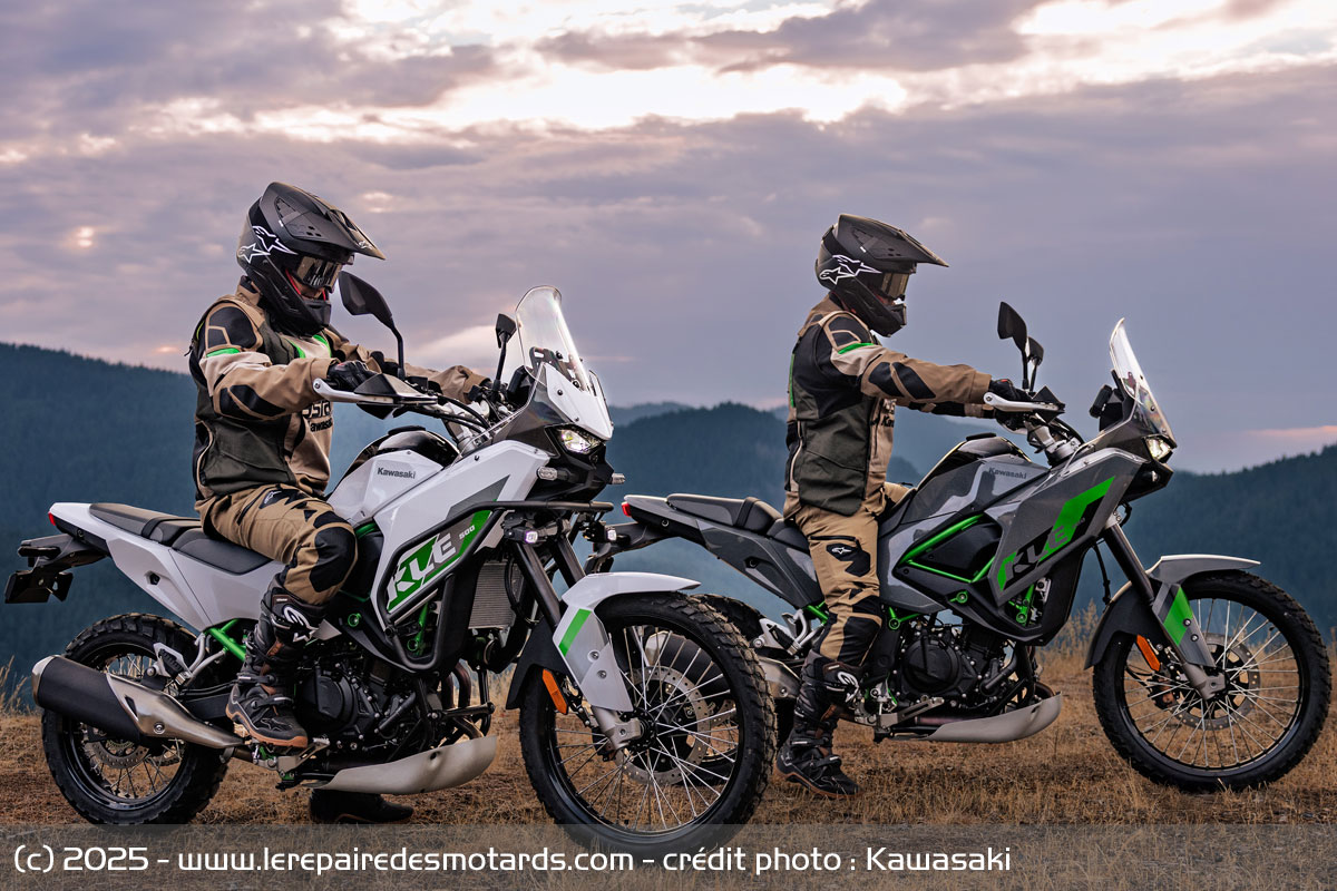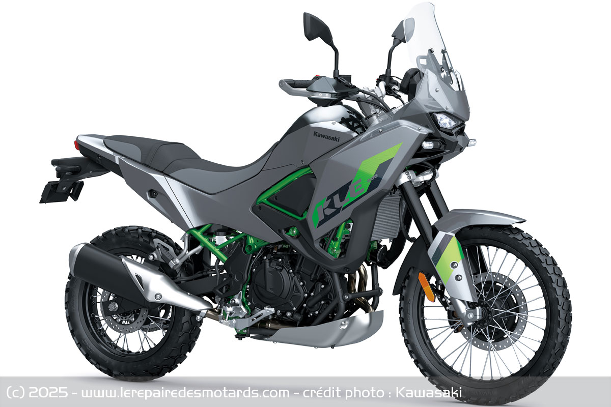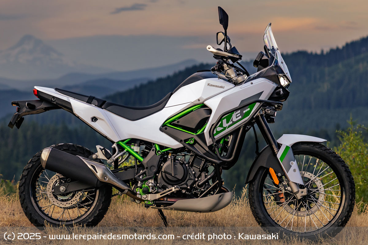Bicylindre en ligne de 451 cm3, treillis en acier, suspensions KYB, jantes à rayons de 21 et 17", réservoir de 16 litres...