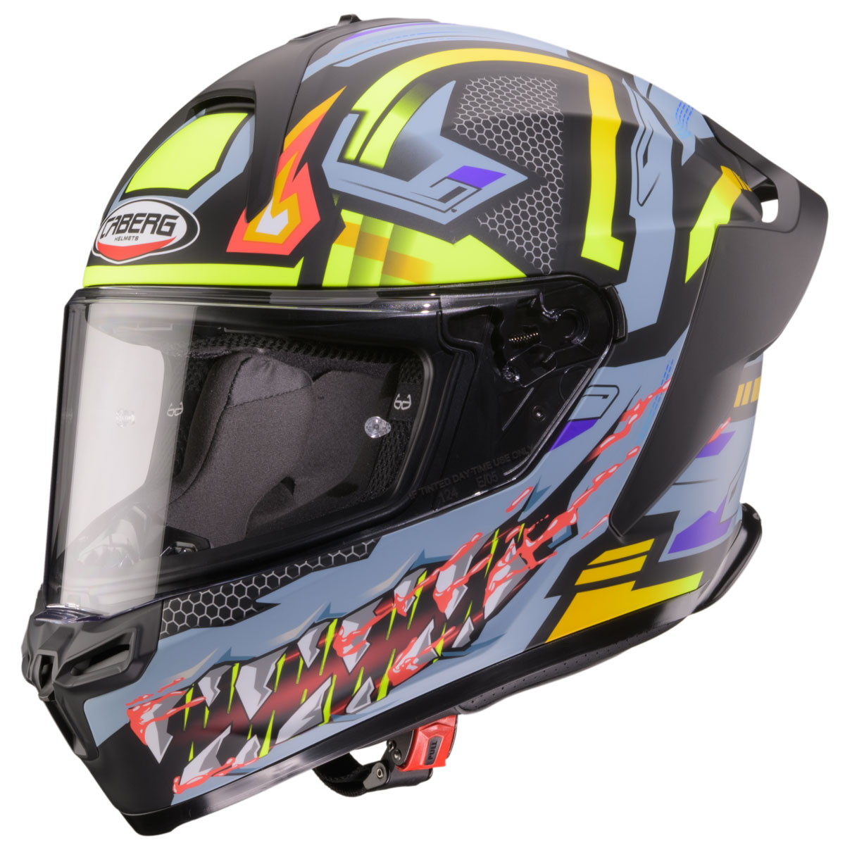 On retrouve aussi un intérieur entièrement démontable et lavable qui présente des cannelures pour faciliter le passage des branches de lunettes et des renfoncements pour l'intégration d'un kit de communication. L'écran clair est traité antirayure et doté d'ergots pour l'installation d'une lentille antibuée Pinlock non fournie. Démontage rapide et verrouillage de l'écran sont à l'ordre du jour. Enfin, le maintien assuré par une jugulaire à boucle micrométrique.