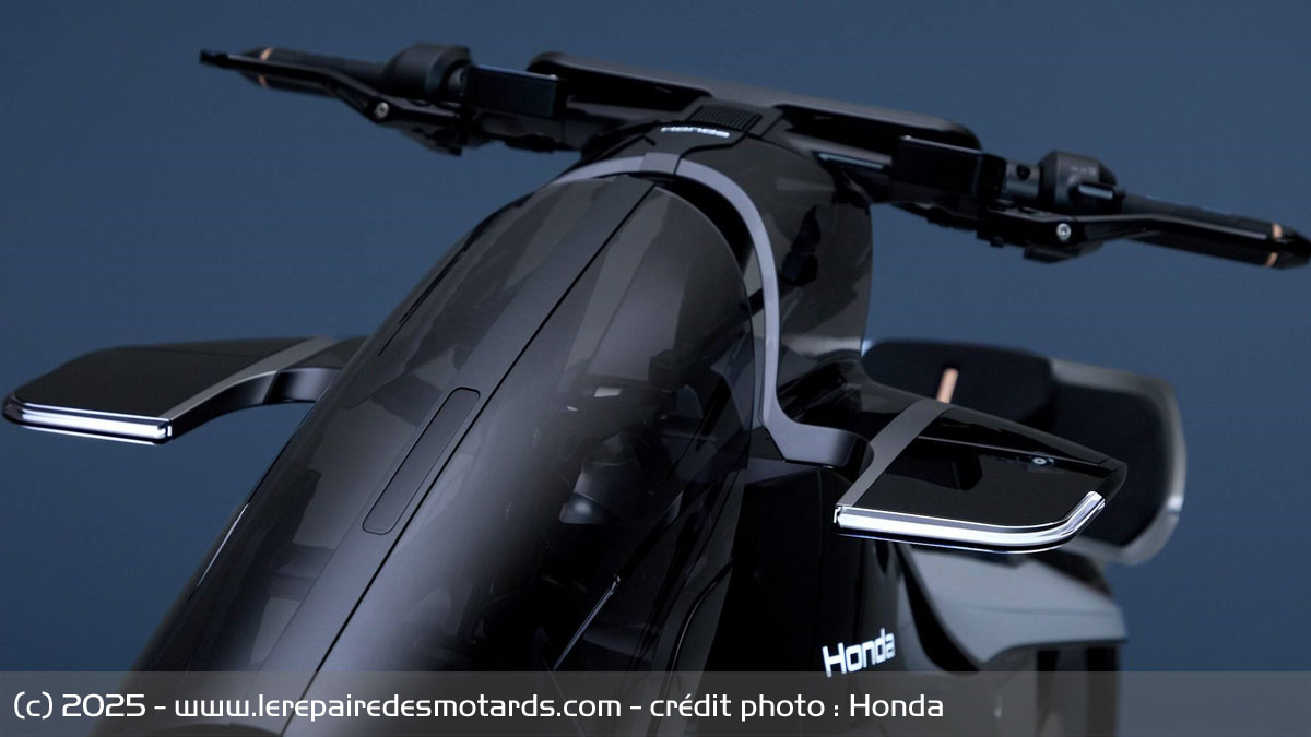 Honda a également intégré bon nombre d'éléments technologiques à l'image des rétroviseurs à caméra qui s'intègre dans l'instrumentation panoramique ou de l'interface utilisateur graphique qui affiche l'angle d'inclinaison et la puissance moteur en temps réel. La marque revendique d'ailleurs s'être appuyée sur son expérience dans ses autres secteurs de prédilection (automobile, robotique, tondeuses...) pour sortir des codes et imaginer la moto de demain.