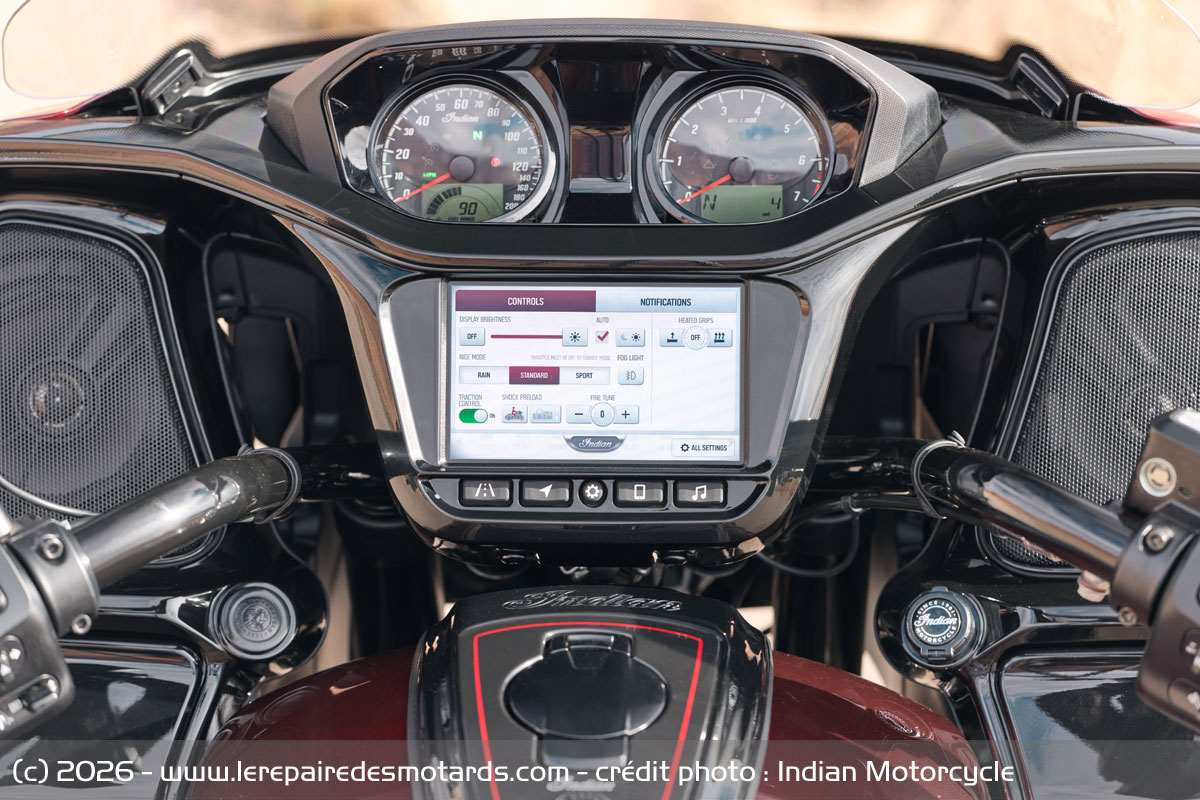 Chaque modèle embarque par ailleurs l'instrumentation tactile alimentée par Ride Command+, avec une dalle de 4 pouces sur les Scout et Chief et de 7 pouces sur la Challenger.