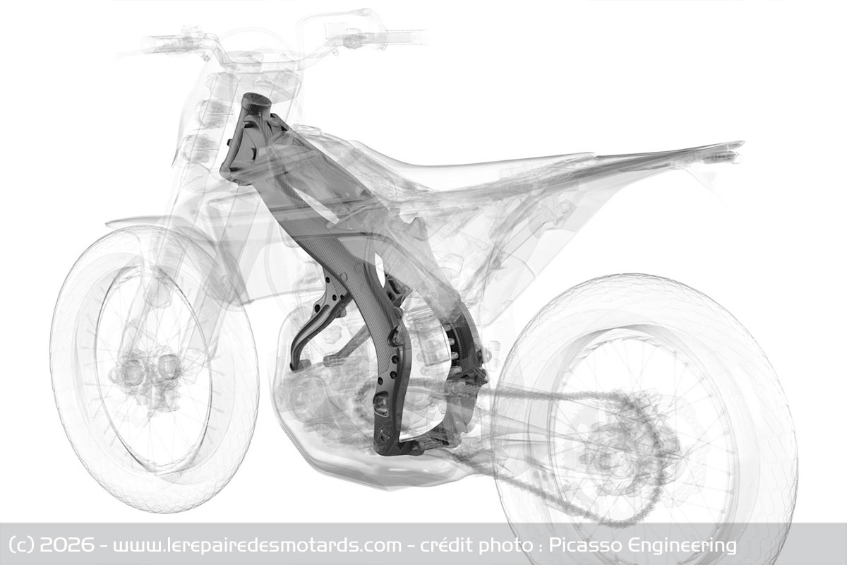 Cette configuration confèrera-t-elle un avantage en course ? On le saura bien assez tôt. En parallèle, Picasso Engineering travaille également sur une OMT 450s Stradale homologuée pour une utilisation sur route. Elle reprend les points forts du modèle racing, y compris son cadre DAST en carbone et y ajoute un système d'éclairage, des rétroviseurs, un support de plaque d'immatriculation et une homologation Euro 5+.