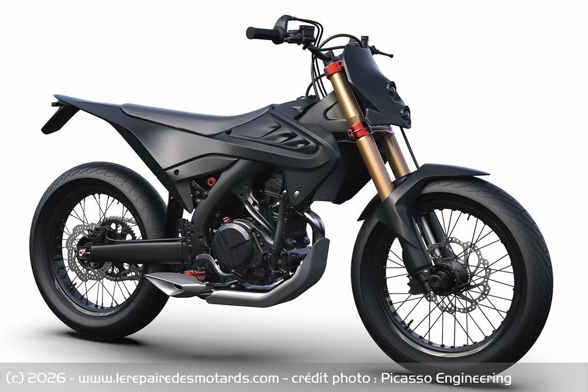 Si l'on voit régulièrement apparaitre de nouveaux noms dans le secteur de la moto, c'est le plus souvent autour de projets liés aux motorisations électriques. Mais c'est bien en s'appuyant sur le thermique que Picasso Engineering entend repousser les limites.