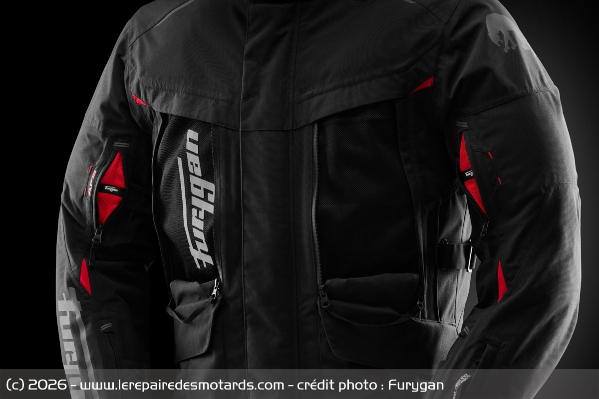Comme toute veste de touring qui se respecte, elle présente aussi de nombreux éléments pratiques et de confort que ce soit avec ses cinq poches extérieures et deux poches intérieures, ses finitions en néoprène, ses pattes de réglages aux bras, aux hanches et à la taille ou encore son zip de connexion pour pantalon.