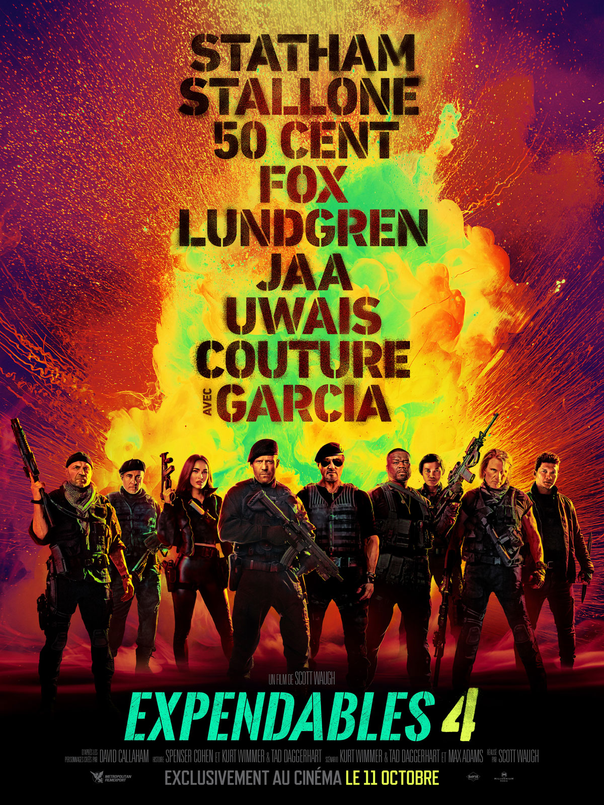 Expendables 4, ou Expend4bles comme il est parfois écrit de manière stylisée, est un film d'action américain réalisé par Scott Waugh. Il s'agit du quatrième opus de la série The Expendables, on y retrouve d'ailleurs plusieurs acteurs présents depuis le début de cette aventure à l'image de Sylverster Stallone, Jason Statham ou Dolph Lundgren. Très mal accueilli par le public, ce quatrième opus a également été descendu par les critiques recevant pas moins de 7 nominations aux Razzy Awards, avec les couronnements de Stallone et Megan Fox dans les pires seconds rôles masculin et féminin.