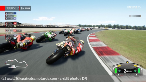 Bien entendu, tout cela dépend également du nombre d'assistances activées au guidon et du niveau d'intervention sélectionné, mais aussi des paramètres d'aide dans les options qui permettent d'automatiser plus ou moins certaines actions (accélération progressive, aide à l'inclinaison, freinage couplé...). La grande différence avec MotoGP à ce niveau est l'absence de correcteur d'assiette, une assistance qui disparaitra de toute façon l'an prochain en Grand Prix en raison de l'évolution du règlement.