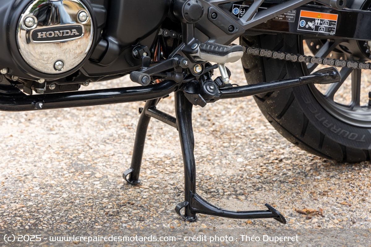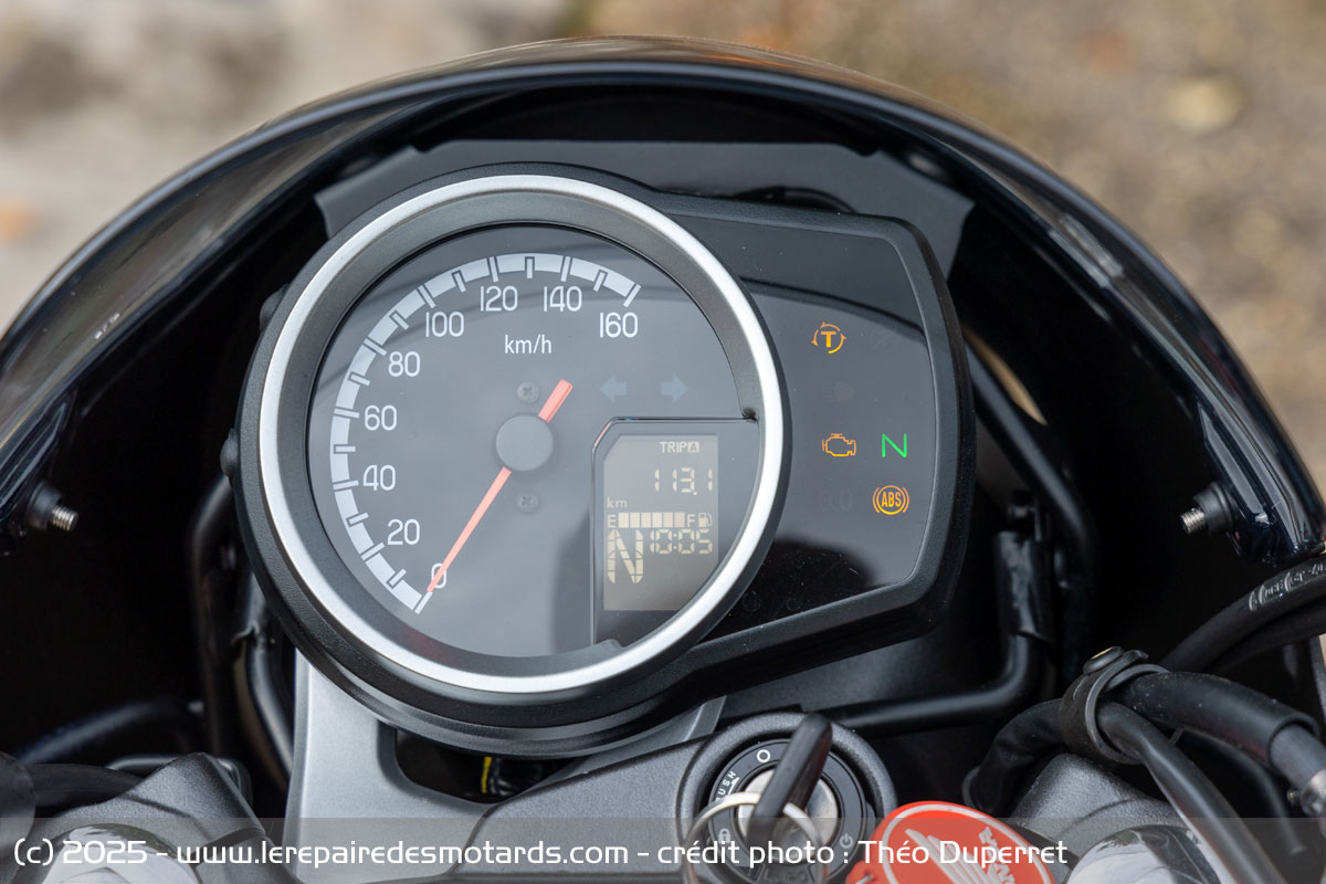 La Honda GB intègre tout de même un embrayage anti-dribble et un antipatinage qu’on peut déconnecter en roulant. Sur notre modèle d’essai équipé d’un habillage de tête de fourche en option, l’accessibilité au bouton pour agir sur le contrôle de traction n’était pas aisée. On notera tout de même que celui-ci n’est pas du tout intrusif. En même temps pour réussir à le déclencher avec 21 ch… faut y aller ! Fidèle à sa philosophie simpliste, la GB n’embarque donc pas de modes de conduite ni de système de connectivité. Mention spéciale pour l’ABS qui met en confiance et, surtout, chose étonnante pour une Japonaise d’entrée de gamme, il est assez bien calibré. Il n’émet pas de retours désagréables dans les commandes. C’est très appréciable.