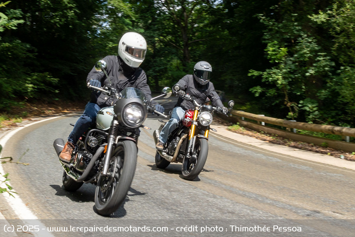 Malgré de vrais arguments, la Triumph aurait sûrement pu remporter ce point contre beaucoup d’autres machines du même segment. Mais face au prix de base très agressif de la GB 350, Antonin et Théo ont été forcés de constater qu’en 2025, Honda ne voulait aucune concurrence sur sa politique tarifaire. Ils saluent donc le constructeur ailé qui sait proposer des alternatives aux Français dont le pouvoir d’achat est en baisse.