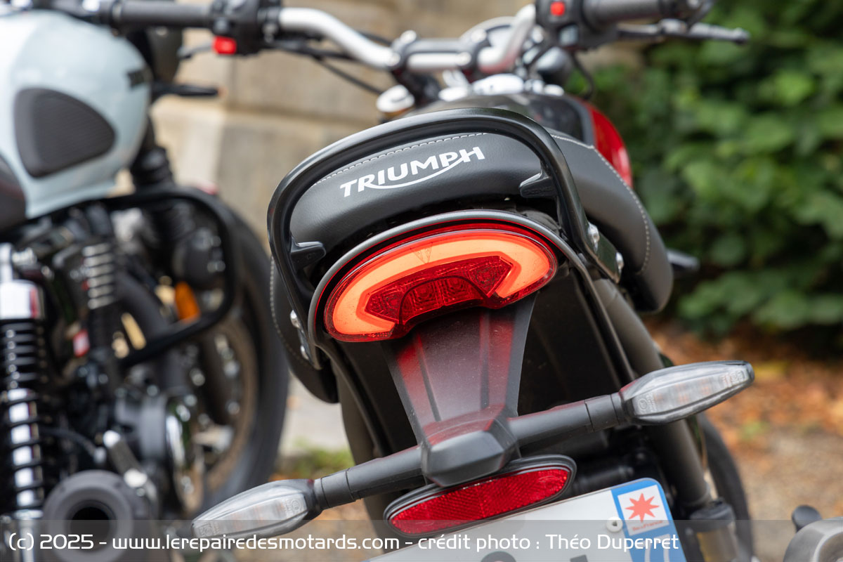 La Triumph, avec un réservoir plus petit (13 litres) et un moteur plus puissant, consomme forcément plus. La conso calculée durant ce comparo s’est élevée à 4,1l/100km. Elle se contentera d’environ 300 à 315 kilomètres d’autonomie. Rien de honteux, mais l’écart n'est pas sensible.