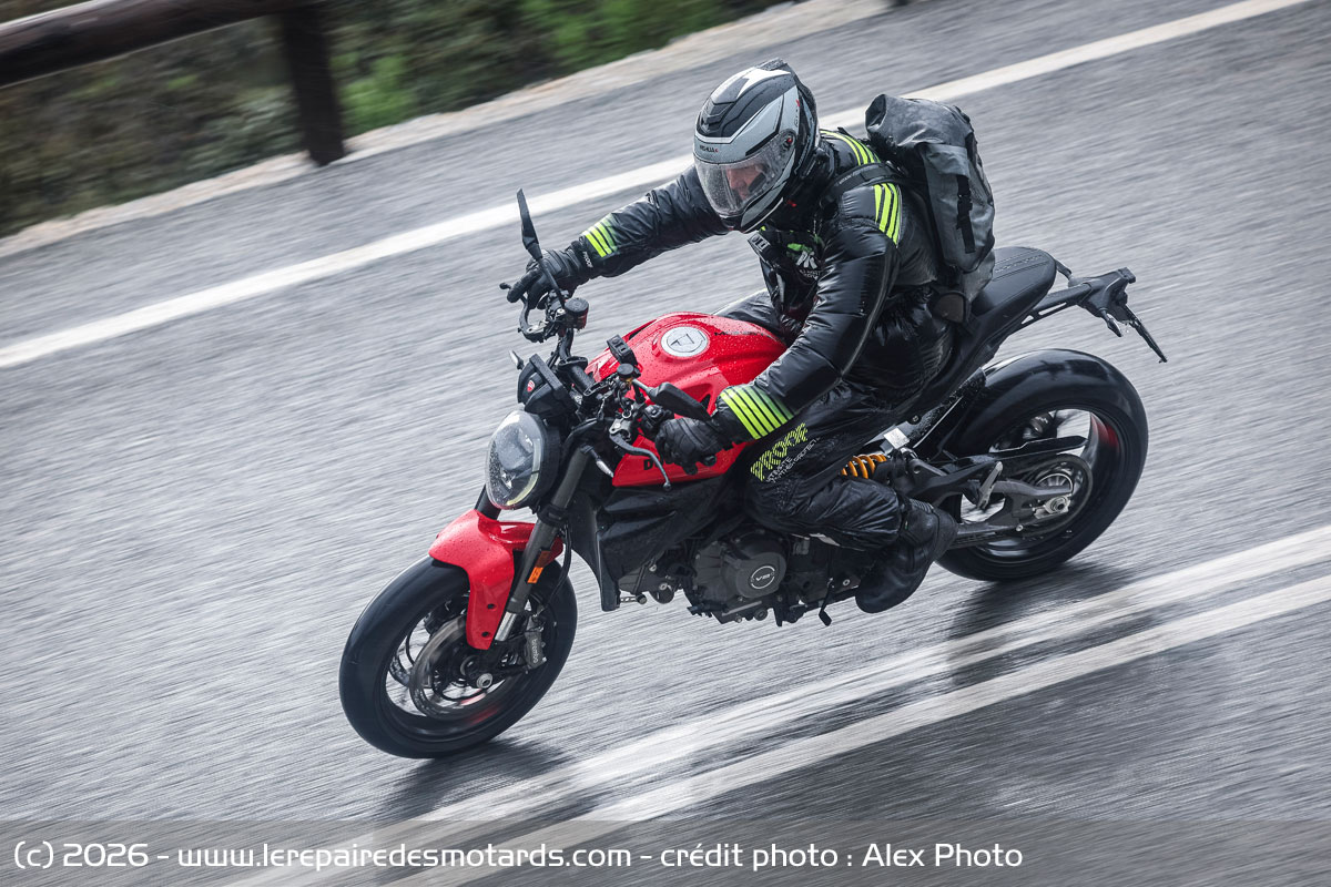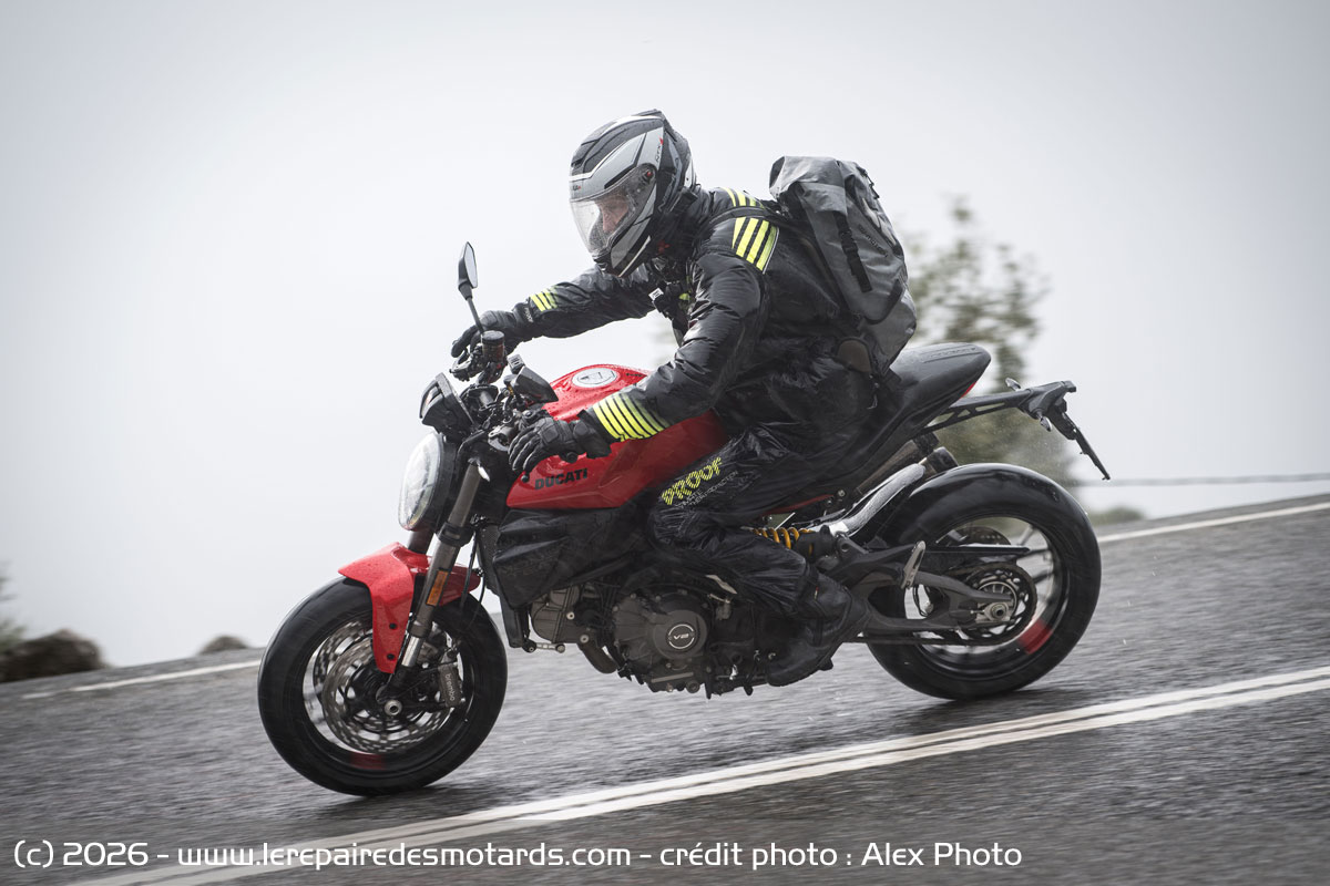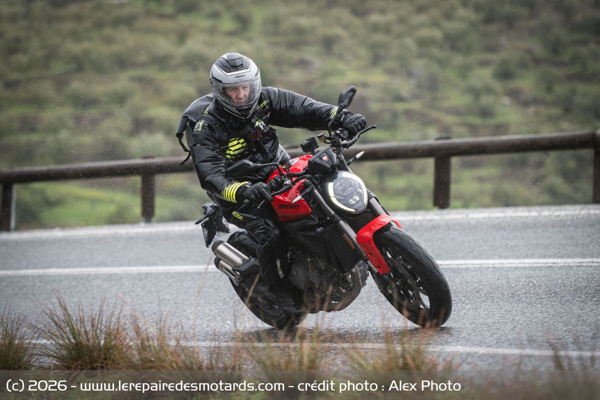 C’est à Malaga et sous une pluie continue que nous prenons en main la nouvelle Monster pour un essai forcément un peu limité.