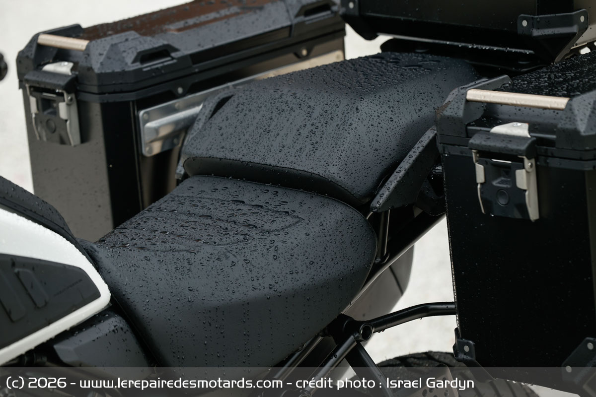 Large, longue, l’assise pilote permet un bon recul au plus grand. Épaisse, elle s’associe aux suspensions pour délivre un grand confort à tout moment. Le passager est aussi bien logé, mais ses poignées de maintien trop anguleuses pourront devenir pénibles à la longue.