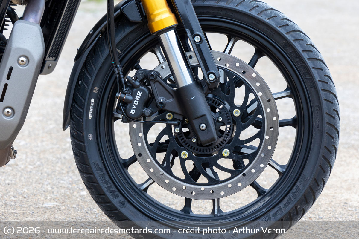 Les pneus MRF nous ont donné entière satisfaction sur notre essai, bien que la marque soit peu connue en France. Si vous roulez tous les jours, restez prudents et envisagez de mettre une monte plus connue.