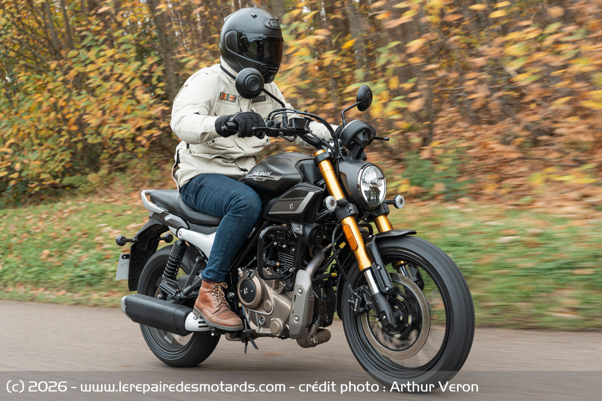 Fort de l’héritage d’un développement avec Harley-Davidson et d’une garantie de 5 ans par l’importateur GD France, cette Hero Hunk 440 a toutes ses chances pour séduire le nouvel arrivant, comme le motard confirmé qui cherche une machine fonctionnelle et pas chère. Meilleur marché que la plupart des 125 cm3 du marché, elle ne commet aucun réel faux pas même si on passe en atelier tous les 6 000 km pour une vidange. Une chose est sûre : pour 3 599 €, on en a pour son argent ! Un prix officiel jusqu’au 31 décembre 2025, mais qui ne devrait pas augmenter en 2026 d’après nos informations. Il nous tarde d’essayer les prochains modèles de la marque qui devraient arriver « très vite » d’après le PDG.