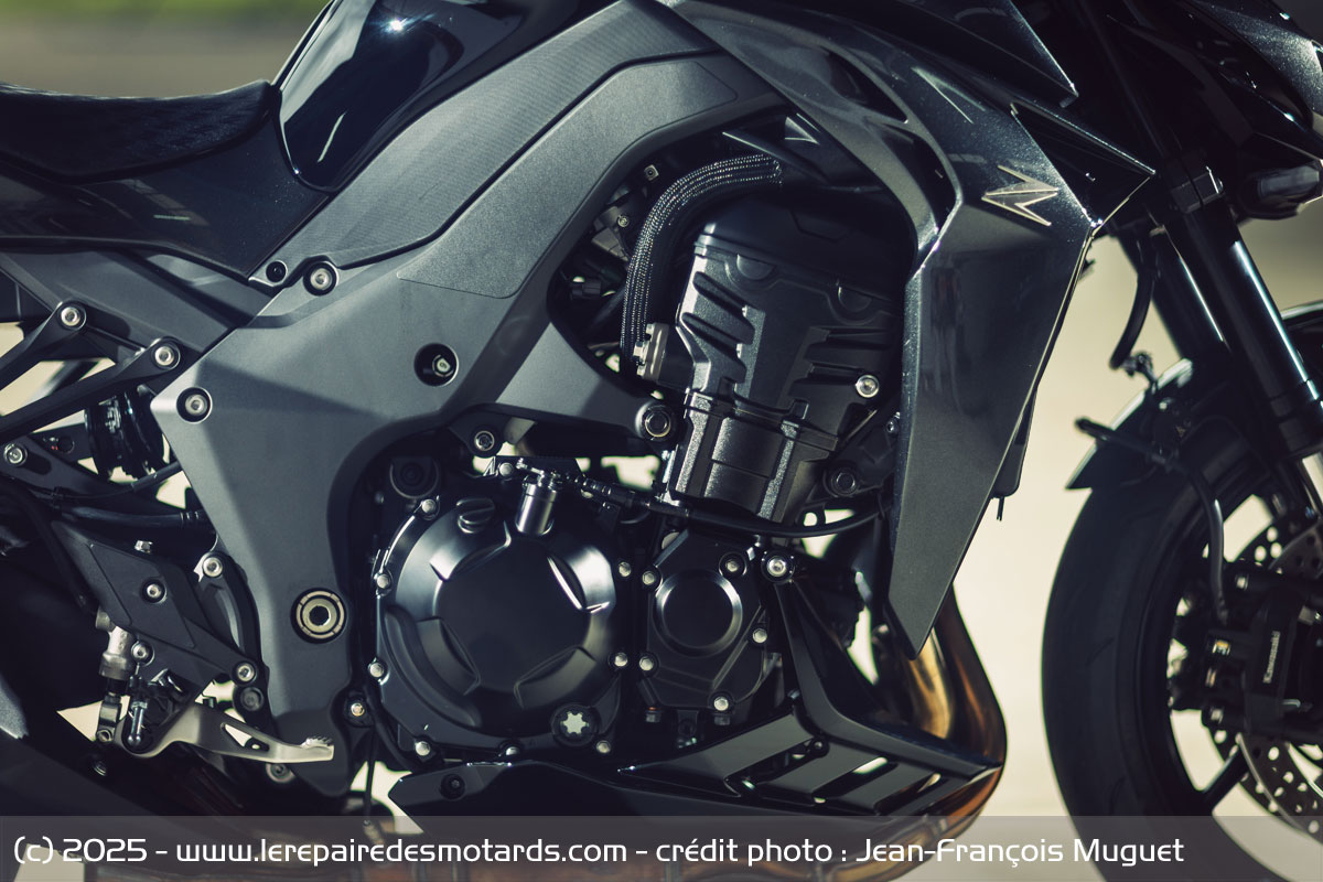 De fait, la Z demeure une moto vive et remuante sur les tracés campagnards, au point d’obliger à la réserve et à l’attente d’un terrain plus dégagé et mieux revêtu. Dès lors, elle devient une petite merveille de stabilité offrant de se placer comme on le souhaite à bord pour l’emmener. Fini la résistance à la mise sur l’angle occasionnée par les pneumatiques, finies les questions sur la manière dont on va se faire secouer, tout rentre dans l’ordre et dans le meilleur possible : la 1100 tient le pavé, au sens figuré mieux qu’au sens propre, d’ailleurs. Avec sa partie cycle inspirée de celle d’une sportive et ses proportions très agréables, elle rappelle qu’elle est le trait d’union entre une Versys et une Ninja, offrant un « confort » intermédiaire et un comportement nettement plus incisif cependant.