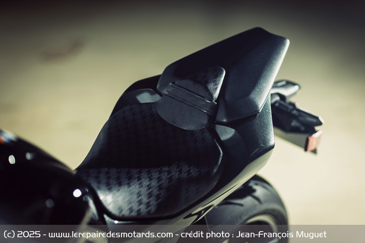 À propos de finesse, l’épaisseur de la mousse ne laisse aucun doute quant au confort relatif de l’assise, mais les appuis fessiers étant limités, on compose ! Vive le roadster…