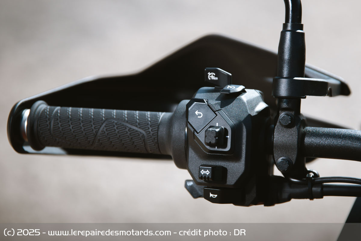 Naturelle, la position induite est propice au long voyage, laissant tomber les bras sur un cintre judicieusement élargi de 30 mm. Les gants côtoient de nouveaux commodos rétroéclairés. Celui de gauche arbore désormais un joystick multidirectionnel pour commander la - très - vaste étendue des fonctionnalités de réglage et personnalisations possibles. Côté droit, un poussoir permet l’accès aux profils de pilotage et à la commande de boite automatique ou Manuelle. Enfin les leviers sont bien sûr réglables en écartement.