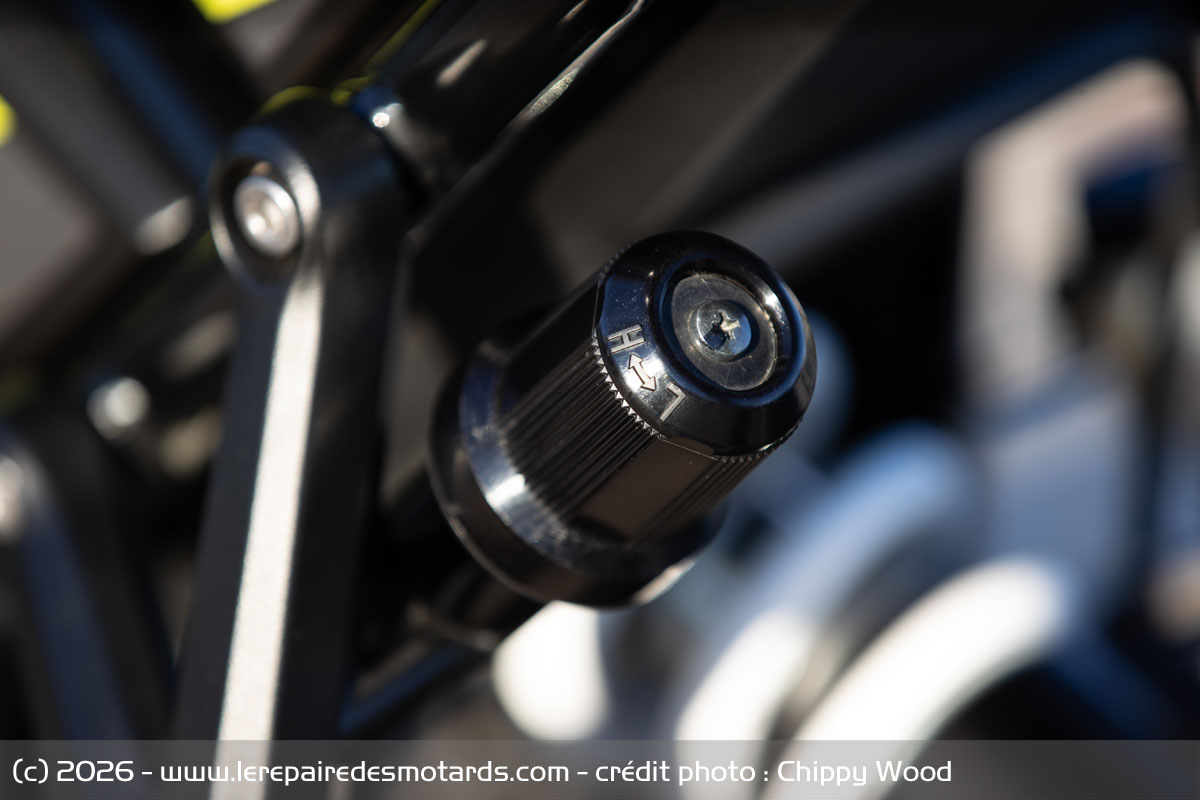 L’option de connectivité permet, via votre smartphone, la gestion de vos appels, de votre playlist musicale, mais surtout un guidage GPS simplifié turn by turn bien pratique. On consultera également la pression des pneus (option). Seul regret au tableau technologique, pas de prise USB vers les instruments. Celle-ci, USB-A, est placée sous la selle. Mais le levier de frein est réglable en écartement et l'ergonomie des commandes très performante.