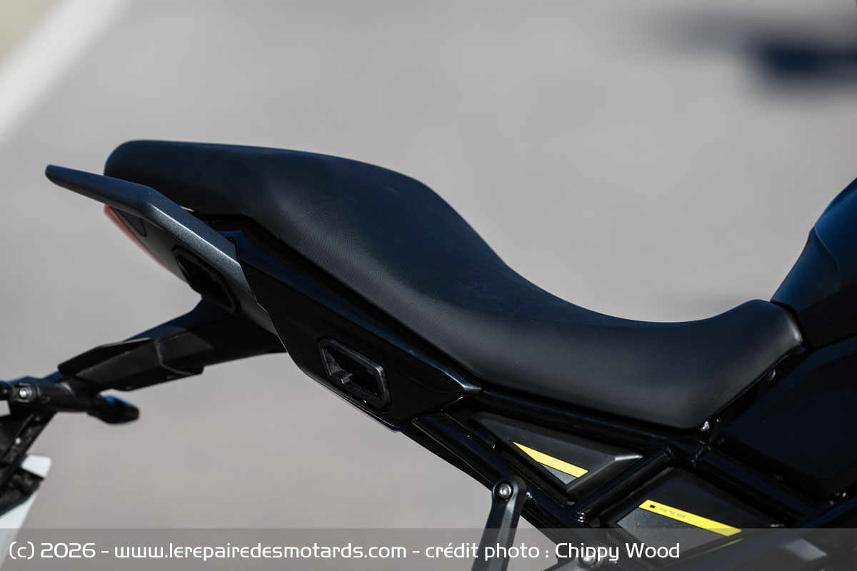 Le duo étant pas non plus envisageable sur longue distance. La selle est trop courte, d'ailleurs ca m'énerve de pas avoir d'essais avec passager-ère. Cela révèle souvent les faiblesses de la partie cycle ( amortisseur, freinage, assiette, etc... ) et la capacité du moteur : couple, reprises, etc...