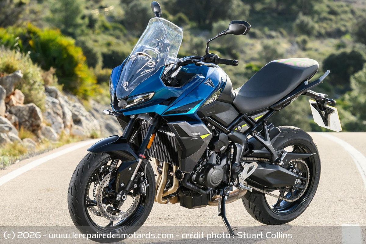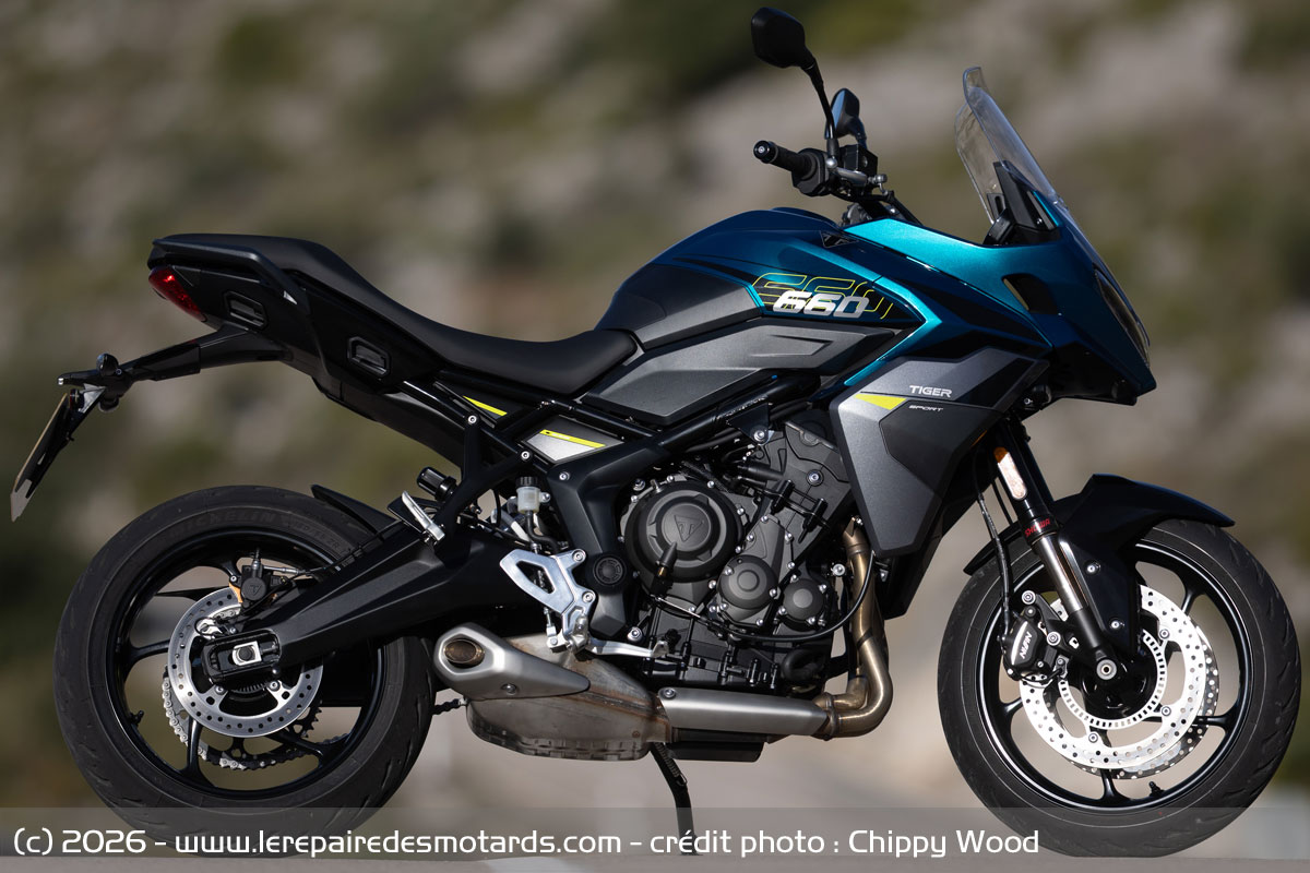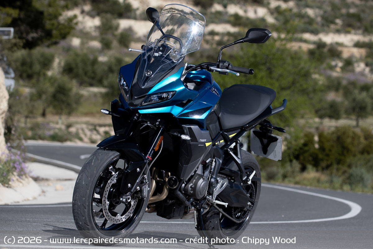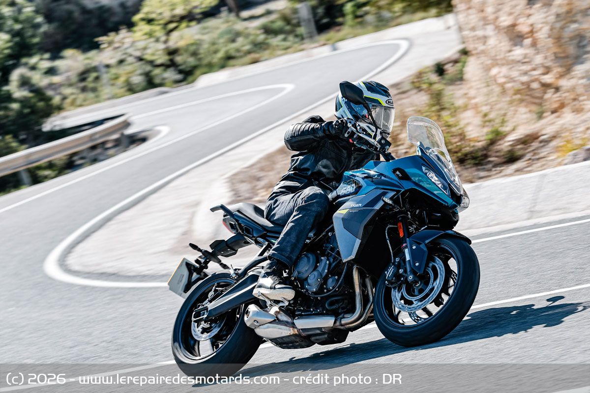 L’année suivante fait paraitre la Tiger Sport 660 qui s’appuie sur le roadster Trident dévoilé quelque mois auparavant. La recette des années 2000 est reprise, la nouveauté arborant le style sportif des Daytona décliné sur une GT compacte. Perfectible en dynamique, l’Anglaise revient cette année modernisée, vitalisée, au travers d’un hybride routier dynamique reprenant de nombreux éléments de la Tiger Sport 800. C’est aux environs de Benidorm (Espagne) que nous emmenons la petite voyageuse d’outre-Manche.