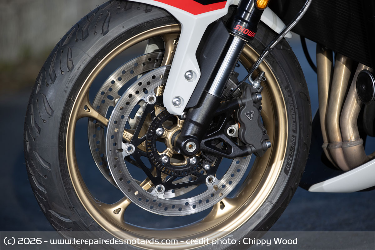 On a bien travaillé chez Triumph, elle fait envie... un bras oscillant en alu et des freins de chez Brembo et elle sera parfaite.