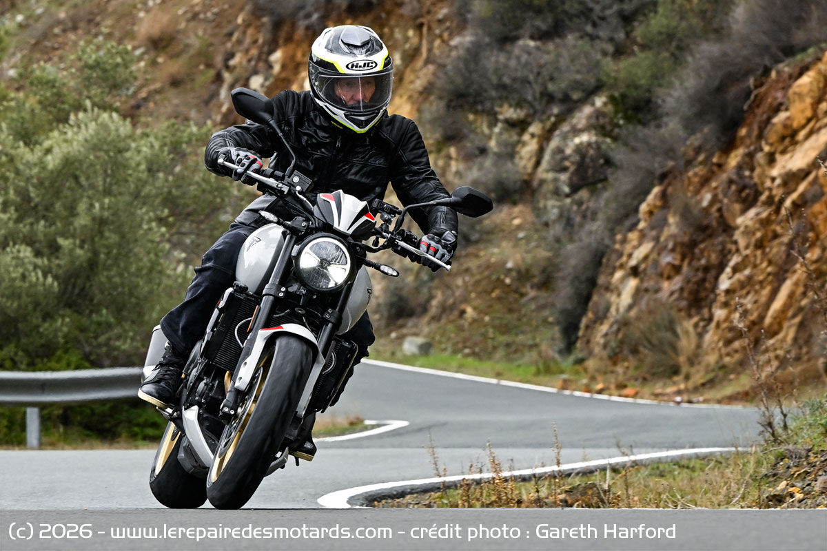 Dynamique et sure, la Trident n’est pas une routière au long cours et préfère assurément harponner des serpents routiers, exigeant adresse et mobilité.