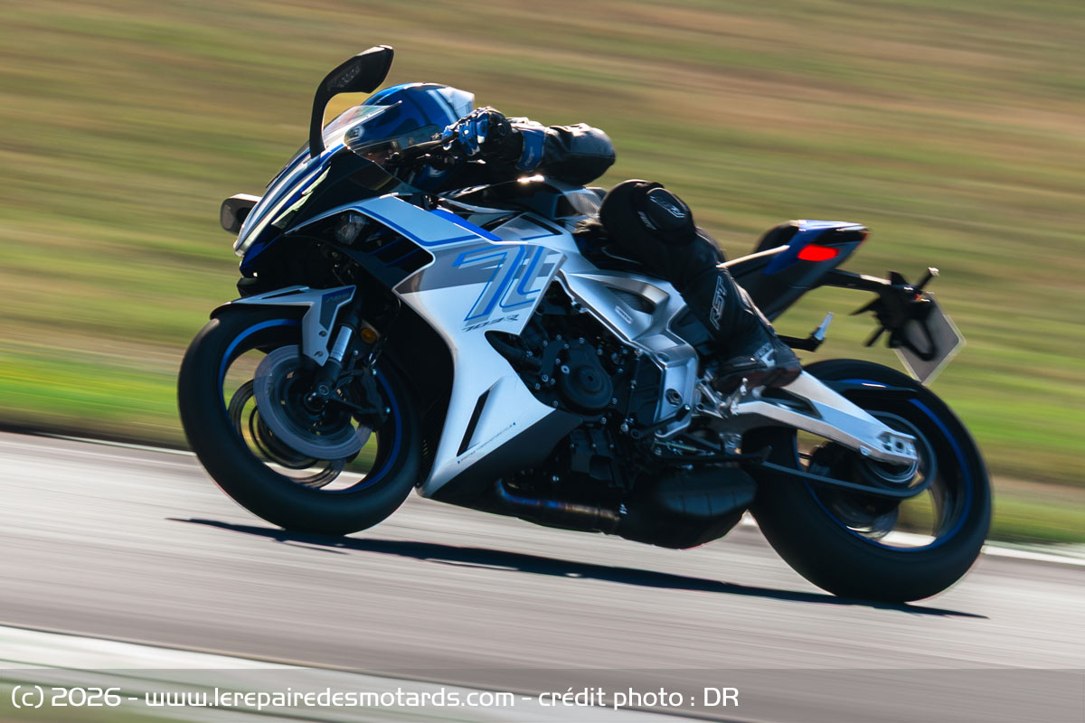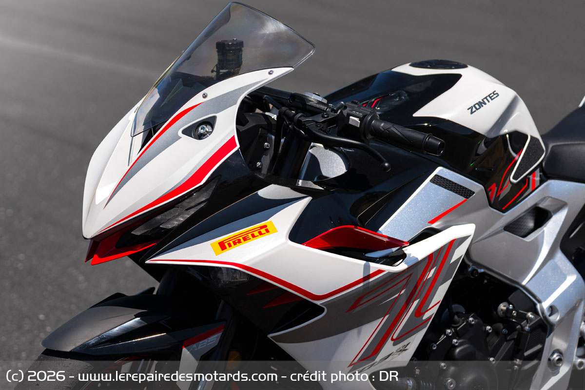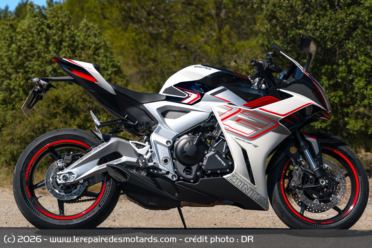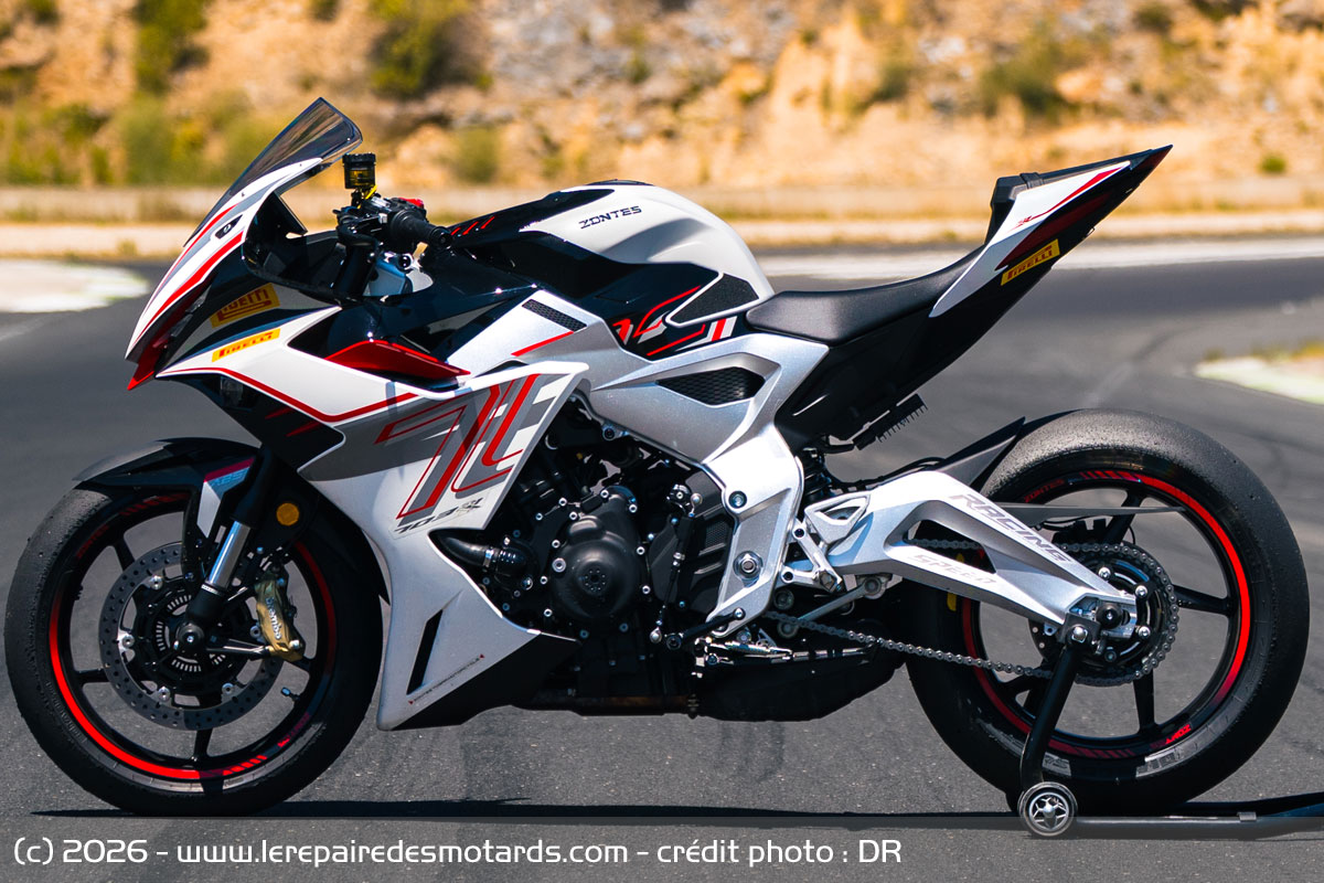 Les concurrentes se font bien plus chères et pas toujours aussi homogènes ni précises, notamment en conduite sportive et rarement aussi réglables en tous sens et enthousiasmantes. Yamaha R7, Suzuki GSX-8R, moins puissantes, Aprilia RS 660 relativement proche en tout point et bien entendu Daytona 660, à la motorisation similaire ou presque peuvent se faire du souci, tandis que seule une autre chinoise, la CFMoto 675 SR-R semble pouvoir rivaliser dans l’immédiat niveau tarif, semble-t-il avec un moteur un peu moins expressif, mais avec un look superbe. Il sera intéressant en tout cas de confronter ce petit monde et de jauger cette Zontes, une petite marque se voulant premium et qui monte, qui monte, qui monte… À ce prix, on peut en tout cas y réfléchir.