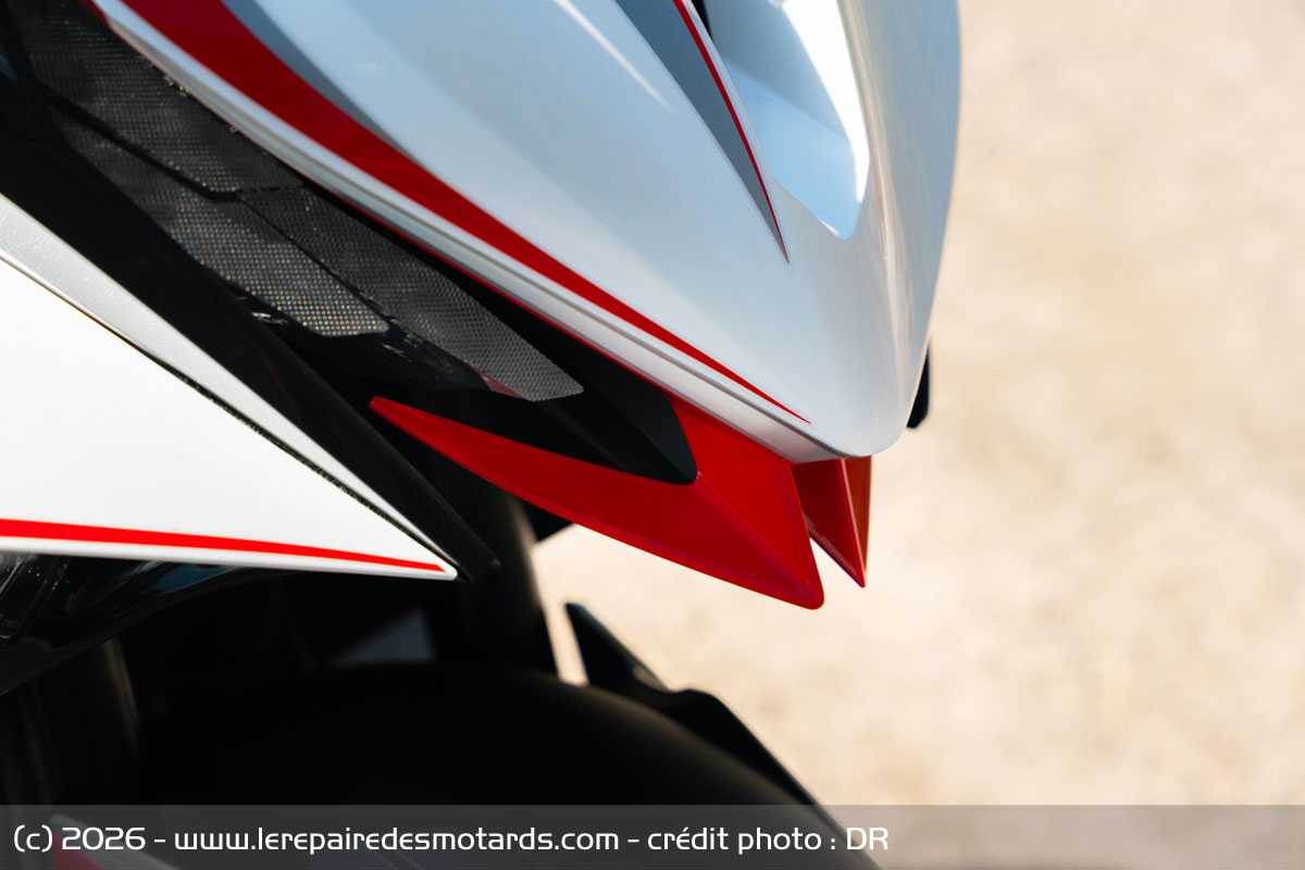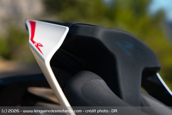 On peut être sportive et ne pas oublier d’être agréable. Démarrage sans clef par transpondeur (moins pratique quand on n’a pas de poche, notamment sur piste…), la moto offre du sans clef jusque dans l’ouverture de la trappe à essence ou de la selle laissant accès à un petit coffre et aux organes, dont la batterie Lithium plus puissante et plus légère que n’importe quel autre type.