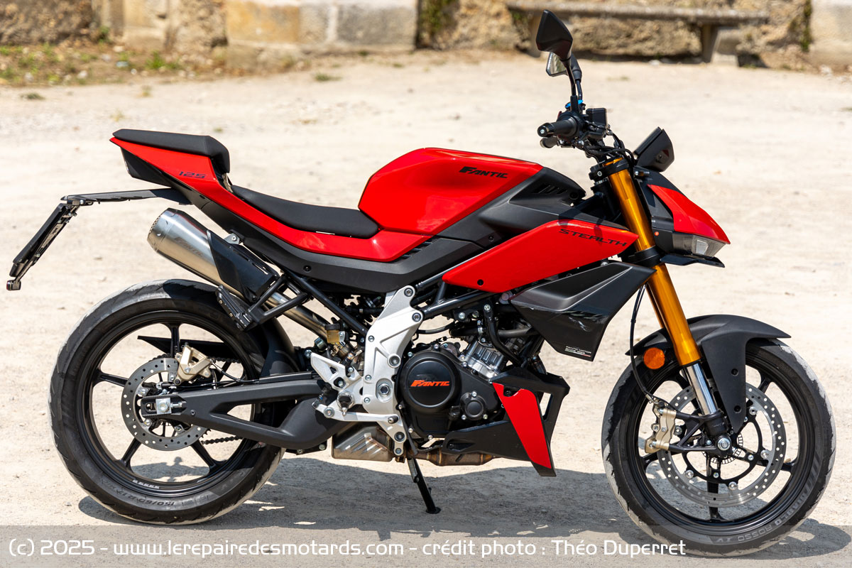 Animée par un moteur monocylindre 125 cm³ d’origine Minarelli, celui-là même qui propulse les Yamaha à calage variable, la Fantic Stealth 125 se distingue par un niveau d’équipement inhabituel dans la catégorie A1. Positionné comme un petit roadster sportif au style affirmé, il mise sur une base technique partagée avec les modèles 500 cm³ de la marque. Une approche ambitieuse pour une 125.